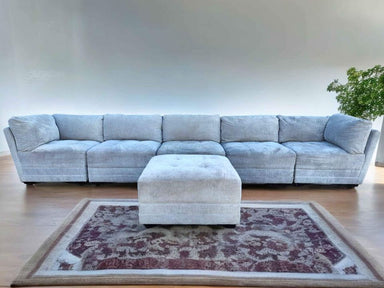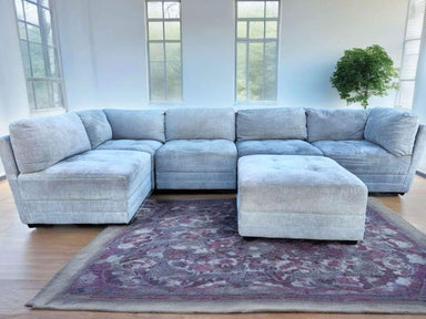 Thomasville 6 Piece Modular Sectional Couch Sofa with Ottoman in Gray