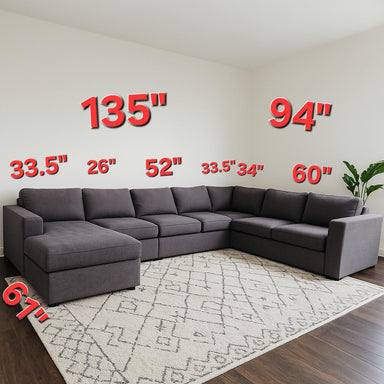 Extra Large Gray U Shaped Modular Sectional Couch Sofa