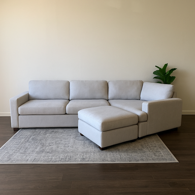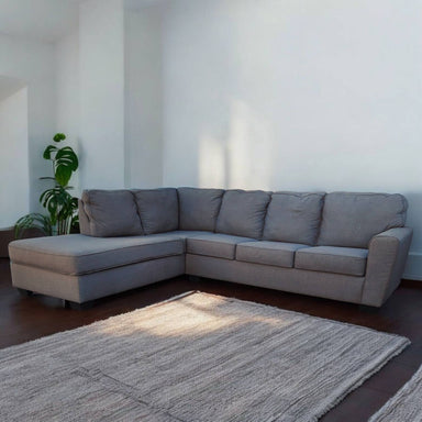 Looking for a beautiful pre owned couch in San Jose that’s both stylish and affordable? This light gray Living Spaces L-shaped sectional is perfect...